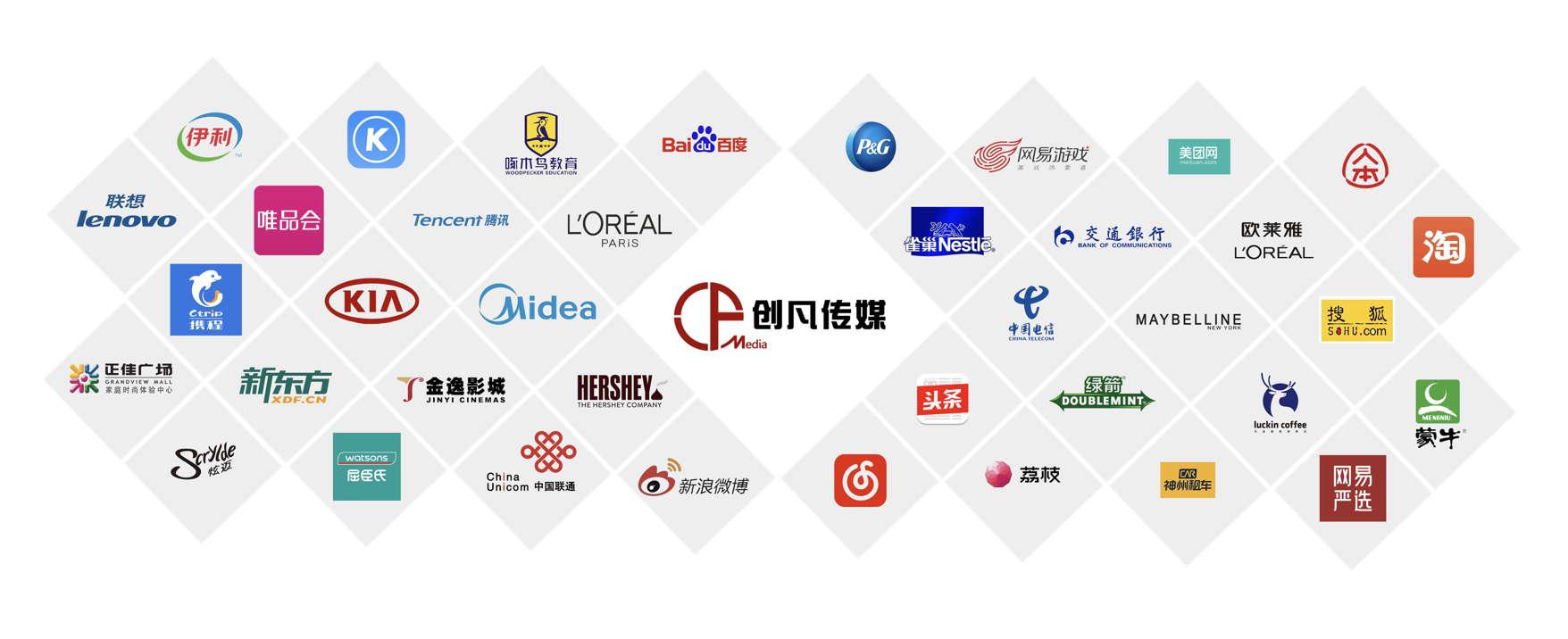 公司以“做品牌年輕化的好幫手”為使命,憑借敏銳的創(chuàng)意洞察、卓越的營銷策劃能力、豐富的活動(dòng)經(jīng)驗(yàn)和全方位的媒體資源,為企業(yè)提供高效、精準(zhǔn)的一站式營銷推廣服務(wù)。已成為寶潔、騰訊、京東、中國聯(lián)通、字節(jié)跳動(dòng)等世界500強(qiáng)品牌庫內(nèi)供應(yīng)商。